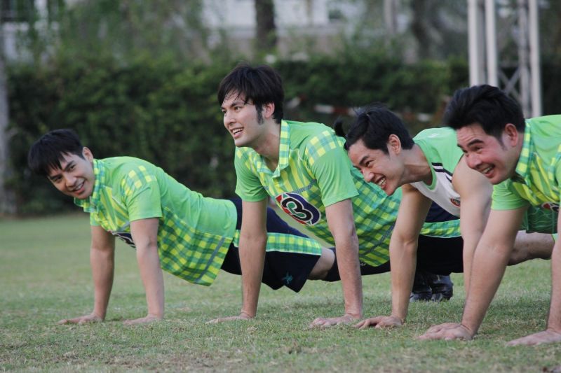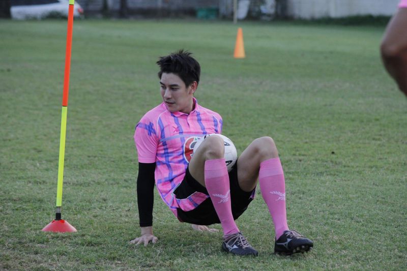 ส่วนทางด้าน“อาเล็ก-ธีรเดช”เพิ่งได้มาซ้อมเป็นครั้งแรกเพราะคิวแน่นมาก แต่ความฟิตในวันนั้นเรียกว่ามาเต็ม!! จึงขอฝากความห่วงใยไปถึงน้องชายสุดที่รัก “เคน-ภูภูมิ”ว่า…“สำหรับน้อง เคน ระยะหลังดูค่อนข้างห่างหายไปจากวงการและจากผมด้วยครับผมคิดถึงเขาครับ และอยากรู้ว่าจะมีกลยุทธ์อะไรมาจัดการผมบ้างครับ เอาใจช่วยให้น้องเคนของผมด้วยนะครับ”(ยิ้มมุมปาก)ทำให้หนุ่ม เคนต้องรีบเดินมาตอบกลับในทันใดว่า“แหมม.. พี่ อาเล็ก ก็พูดเวอร์ไป คือจริงๆ คิดถึงผมใช่มั๊ย? ส่วนกลยุทธ์ในการเอาชนะ ผมจัด “เด่นคุณ-งามเนตร”ไว้รอรับลูกฟุตบอลแล้วครับ”งานนี้ความหวังทั้งหมดอยู่ที่ เด่นคุณ เพราะฝันว่าได้ไปซ้อมถึงเยอรมันมานั่นเองส่วนทางด้านพระเอกนักกีฬา“บอมบ์-ธนิน”ที่ได้เปิดเผยว่า“กลยุทธ์ของผมก็มีครับ คือให้พี่โป๊บ ลงเยอะๆครับเป็นความหวังของผมเลยครับ”นั่นคือความรู้สึกของแต่ละคนที่มาเจอกันและซ้อมฟุตบอลร่วมกันอย่างสนุกสนานเต็มไปด้วยมิตรภาพ