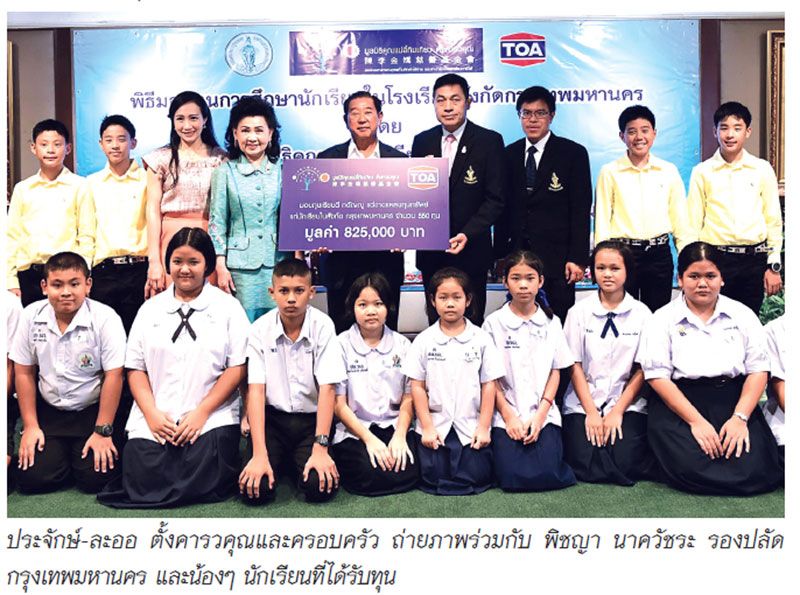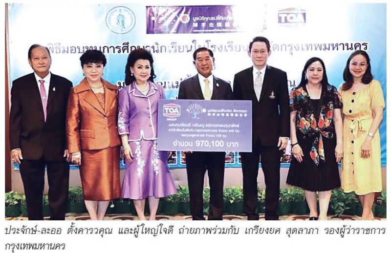 บมจ.ทีโอเอ เพ้นท์ (ประเทศไทย) และ มูลนิธิคุณแม่ลี้กิมเกียว ตั้งคารวคุณ มอบทุนการศึกษานักเรียนสังกัดกรุงเทพมหานครต่อเนื่องเป็นปีที่ 4