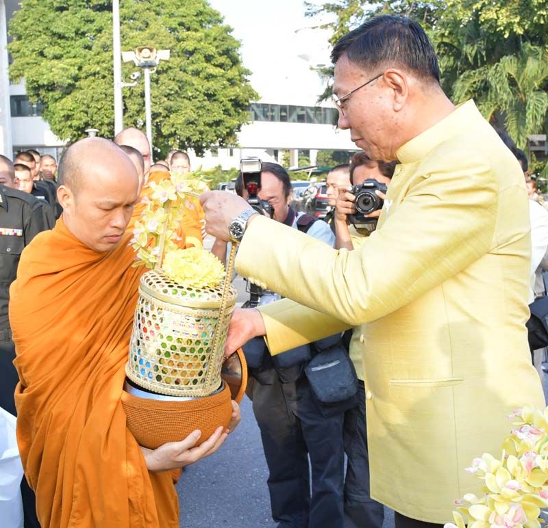 วันอังคารที่ 4 ธันวาคม 2561 เวลา 07.00 น. ศ.พิเศษ พรเพชร วิชิตชลชัย ประธานสภานิติบัญญัติแห่งชาติ เป็นประธานในพิธีถวายภัตตาหารเช้าแด่พระภิกษุสงฆ์ โดยมี สมาชิกสภานิติบัญญัติแห่งชาติ บุคลากรของสำนักงานเลขาธิการวุฒิสภา และสำนักงานเลขาธิการสภาผู้แทนราษฎร ร่วมพิธี ณ ห้องอาหารสมาชิกรัฐสภา ชั้น 2 อาคารรัฐสภา 1 จากนั้น เวลา 07.40 น. ได้ร่วมกันตักบาตรข้าวสารอาหารแห้งแด่พระสงฆ์ จำนวน 92 รูป จากวัดบวรนิเวศวิหาร วัดเบญจมบพิตรดุสิตวนารามวัดนรนารถสุนทริการาม และ วัดอัมพวัน ณ บริเวณหน้าพระสยามเทวาธิราชและเวลา 08.00 น. เป็นการถวายพานพุ่มดอกไม้หน้าพระบรมฉายาลักษณ์พระบาทสมเด็จพระปรมินทรมหาภูมิพลอดุลยเดช บรมนาถบพิตร ของประธานสภานิติบัญญัติแห่งชาติ รองประธานสภานิติบัญญัติแห่งชาติ ประธานคณะกรรมาธิการสามัญประจำสภานิติบัญญัติแห่งชาติ ประธานคณะกรรมาธิการวิสามัญการพิทักษ์และเทิดทูนสถาบันพระมหากษัตริย์ เลขาธิการวุฒิสภา เลขาธิการสภาผู้แทนราษฎร และเลขาธิการสถาบันพระปกเกล้า ณ บริเวณหน้าอาคารรัฐสภา 2
