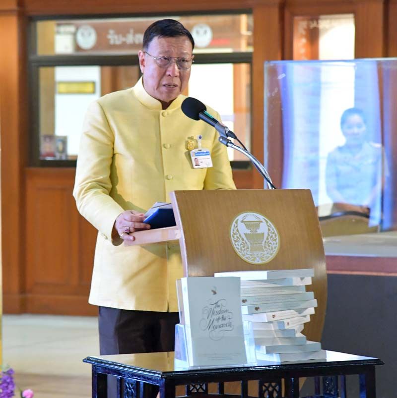 นอกจากนี้ เวลา 09.30 น. ได้จัดให้มีการแถลงข่าวเปิดตัวหนังสือ “The Wisdom of the Monarch : A World Leader in Sustainable Development Laws Supporting Royal Initiated Projects of His Majesty King Bhumibol Adulyadej” ซึ่งจัดทำขึ้นเพื่อรวบรวมกฎหมายที่สนับสนุนการดำเนินงานในโครงการอันเนื่องมาจากพระราชดำริให้เห็นเป็นรูปธรรม และนำไปสู่การพัฒนาหรือปรับปรุงกฎหมายที่เกี่ยวข้องกับโครงการอันเนื่องมาจากพระราชดำริ นับเป็นการจัดทำขึ้นครั้งแรกและยังไม่มีหน่วยงานใดดำเนินการมาก่อน โดยมีเนื้อหาครอบคลุม 13 ด้าน ได้แก่ ด้านทรัพยากรน้ำ ด้านทรัพยากรป่าไม้ ด้านทรัพยากรดิน ด้านการเกษตร ด้านการส่งเสริมอาชีพ ด้านสาธารณสุข ด้านสวัสดิการสังคม ด้านการศึกษา ด้านคมนาคม ด้านการสื่อสาร ด้านสิ่งแวดล้อมและการเปลี่ยนแปลงสภาพภูมิอากาศ ด้านนวัตกรรม และหลักปรัชญาของเศรษฐกิจพอเพียง โดยเฉพาะหลักปรัชญาของเศรษฐกิจพอเพียง (Sufficiency Economy Philosophy: SEP) ซึ่งสอดคล้องกับเป้าหมายการพัฒนาที่ยั่งยืน หรือ SDGs ของสหประชาชาติ ณ ห้องโถง ชั้น 1 อาคารรัฐสภา 1
