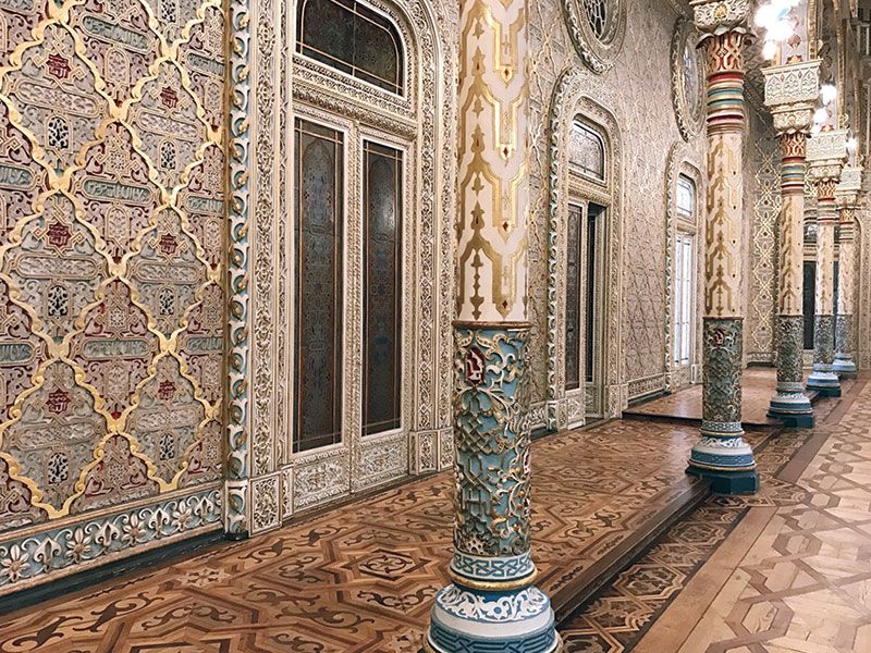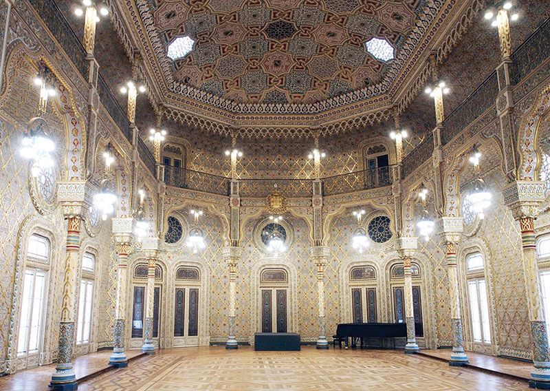 นอกจากอาคารที่อยู่หน้า Praca do Infante D.Henrique นี้ จะมีบันไดและสวนที่แสนสวยงามแล้ว ไฮไลท์ของพระราชวังยังอยู่ที่ Arab Room ห้องที่ Goncalves e Sousa สถาปนิกผู้ออกแบบได้ทำการออกแบบด้วยสถาปัตย-กรรมแบบ Moore ซึ่งเป็นศิลปะที่ผสมผสานระหว่างตะวันออกและตะวันตกให้มีบรรยากาศแบบ 1001 ราตรีโดยใช้สีทองเป็นหลักอันเป็นสถาปัตยกรรมที่นิยมในคริสต์ศตวรรษที่ 19 เพื่อใช้เป็นส่วนรับรองผู้นำของประเทศโดยได้รับแรงบันดาลใจในการออกแบบจาก Alhambra Palace เมือง Granada ประเทศสเปน ปัจจุบันห้องอันแสนสวยหรูนี้มักใช้เป็นที่จัดคอนเสิร์ต