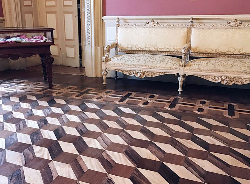 ส่วนรายละเอียดของสถาปัตยกรรมภายในที่ใช้เวลาในการตกแต่งถึง 60 ปีถูกออกแบบโดยศิลปิน นักออกแบบ และสถาปนิกหลายคน เช่น Tomas Augusto Soler ออกแบบโดมโลหะ 8 เหลี่ยมที่ส่วนฐานของโดมถูกตกแต่งอย่างวิจิตรบรรจงด้วยโล่สัญลักษณ์ของโปรตุเกสและเมืองที่โปรตุเกสทำการค้าด้วยในช่วงคริสต์ศตวรรษ 19 Goncalves e Sousa ออกแบบบันได Antonio Soares dos Reis เป็นผู้สร้างงานประติมากรรมตกแต่งบันได Antonio Teixeira Lopes ออกแบบด้านหลังของสวน Jose Marques da Silva ออกแบบบัลลังก์ตัดสินคดี ห้องประชุม และเฟอร์นิเจอร์ของห้อง GoldenJose Maria Veloso Salgado เป็นผู้สรรสร้างงานจิตรกรรมตกแต่งภายใน Teixeira Lopes เป็นผู้สร้างสรรค์งานประติมากรรมส่วนต่างๆ ในพระราชวัง