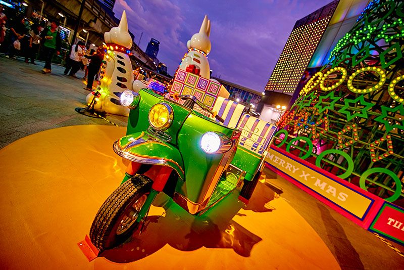 ไอเดียสุดสร้างสรรค์จากการแปลงร่าง“รถตุ๊กตุ๊ก” ซึ่งถือเป็นอีกเอกลักษณ์ของประเทศไทยที่นักท่องเที่ยวต่างชาติต้องมาสัมผัสให้ได้ โดยโดดเด่นตั้งแต่ต้นคริสต์มาสยักษ์สูง19 เมตร รถตุ๊กตุ๊กเปิดประทุนคันงามลากกล่องของขวัญขนาดใหญ่ที่ห่อหุ้มด้วยคำว่า THAILAND ซึ่งพร้อมจะมอบความสุขให้คนไทยและนักท่องเที่ยวจากทั่วโลกที่ได้มาชื่นชม ภายในอาณาจักรความสนุกแห่งนี้ยังล้อมรอบด้วยฝูง ELEPHANT BENCH เก้าอี้ช้างมงคล 9 ตัว ที่มีดวงตาเป็นไฟรถตุ๊กตุ๊ก อุโมงค์ตุ๊กตุ๊กเรืองแสง และเก้าอี้หลากดีไซน์สีสันสดใสกระจายอยู่เต็มพื้นที่