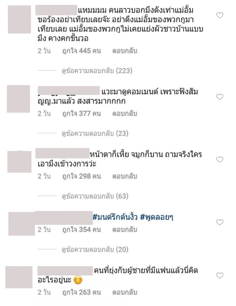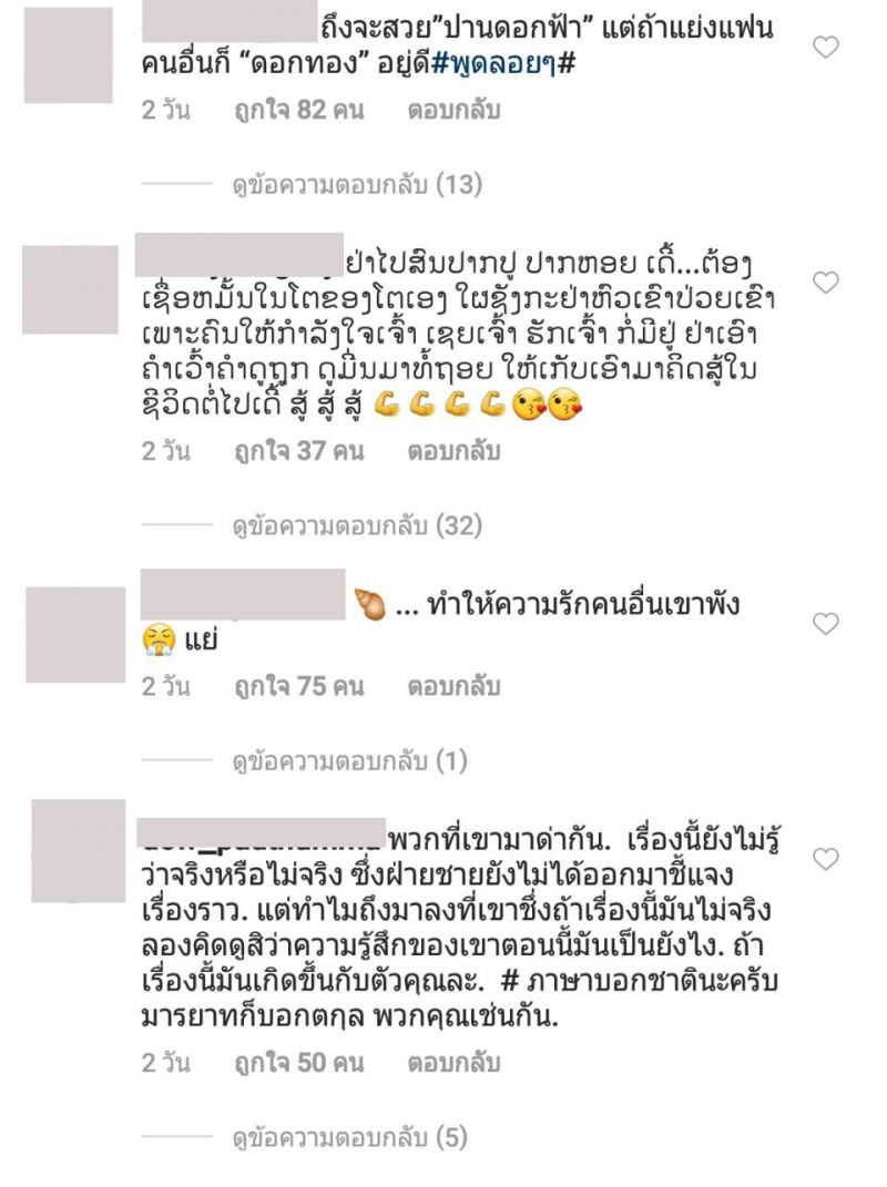 แม้จะไม่เอ่ยชื่อว่าเป็นใครแต่ดูเหมือนงานนี้มงดราม่าจะไปลงที่มิสลาวคนสวยอย่าง ‘ลูกน้ำ-ทิดาลัด’ ที่ได้มาร่วมงานกับหนุ่มตูมตามในละครเรื่อง‘ดอกคูนเสียงแคน’ทางช่อง Gmm25เพราะมีตาดีแอบไปเห็นว่าควงกันไปทานข้าวและพระเอกหนุ่มก็ไปส่งมิสลาวที่สนามบิน ทำเอางานนี้อินสตาแกรมของสาวลูกน้ำลุกเป็นไฟเพราะถูกถล่มจากชาวเน็ตสวดยับชนิดที่ว่าขยับตัวทำอะไรก็ไม่ได้เลยทีเดียว ซึ่งงานนี้จะจริงหรือไม่จริงก็คงต้องรอให้เจ้าตัวออกมาชี้แจงเองจะดีกว่า