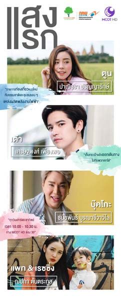 สารคดีแสงแรกจะเริ่มออกอากาศในวันที่ 16 มี.ค. 62 ทุกวันเสาร์ – อาทิตย์ เวลา 10.00น. ทาง MCOT HD ช่อง 30 โดยจะมีจำนวนทั้งหมด 16 ตอน