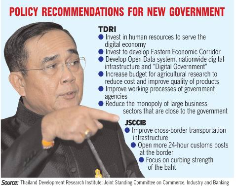 Meanwhile, Preedee Daochai, chairman of the Thailand Bankers’ Association, said at a press conference held by the Joint Standing Committee on Commerce, Industry and Banking (JSCCIB) on Wednesday that the new government will also have to boost the ease of doing business for Thai exporters and that the Bank of Thailand will have to bring down interest rates as soon as possible to make Thai exports more competitive.