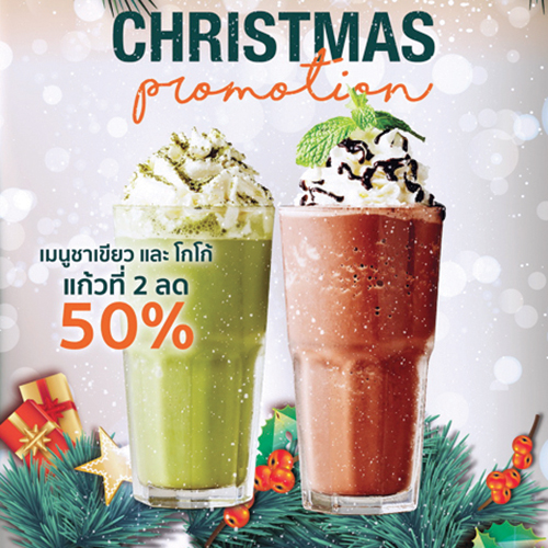 “เครื่องดื่มคริสต์มาส” ชวนชิมเครื่องดื่มแก้วโปรดที่ทุกคนรอคอย อาทิ เมนูชาเขียว, เมนูโกโก้ ฯลฯ ทั้งร้อนและเย็น โปรโมชั่นพิเศษฉลองเทศกาลคริสต์มาส เมื่อซื้อเครื่องดื่มเมนูชาเขียวหรือเมนูโกโก้ แก้วที่ 2 ลดราคา 50% ทันที คิดราคาจากแก้วแพงที่สุด วันนี้-15 ม.ค. 2562 ที่ร้านเซเดอร์เร่เดอ คาเฟ่ ชั้น 1 เมกาบางนา