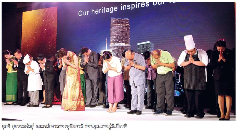 ด้าน ศุภจี สุธรรมพันธุ์ ประธานเจ้าหน้าที่บริหารกลุ่มบริษัท ดุสิตธานี จำกัด (มหาชน) กล่าวให้คำมั่นในฐานะตัวแทนของฝ่ายบริหารและพนักงานว่า “พนักงานของดุสิตธานีทุกคนให้คำมั่นสัญญาว่าจะทุ่มเทให้ดีที่สุดในการสานต่อเจตนารมณ์ของท่านผู้หญิงชนัตถ์ และคุณชนินทธ์ ในการทำให้กลุ่มดุสิตธานี เป็นต้นแบบการโรงแรมอีกครั้ง ภายใต้ชื่อโรงแรมดุสิตธานี กรุงเทพฯ แห่งใหม่ ซึ่งจะกลับมาต้อนรับทุกท่านในอีก 4 ปีข้างหน้า ด้วยเรื่องราวรูปลักษณ์และบุคลิกที่โดดเด่นเหมือนโรงแรมดุสิตธานี กรุงเทพฯ ในอดีต และผสมผสานด้วยความก้าวหน้าทางเทคโนโลยี ที่ช่วยยกระดับและพัฒนาให้มาตรฐานการบริการของเราให้เหนือกว่าที่เคยเป็นมา และสามารถสร้างประสบการณ์เหนือความคาดหมาย ตอบสนองความต้องการที่เปลี่ยนไปของผู้บริโภคในยุคปัจจุบัน”