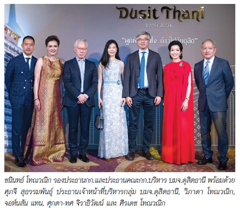เซเลบริตี้แถวหน้าของเมืองไทยเรียงแถวเข้าร่วมย้อนรำลึกความทรงจำ และเป็นส่วนหนึ่งในประวัติศาสตร์ของโรงแรม 5 ดาวแห่งแรกของประเทศ “ดุสิตธานี กรุงเทพฯ” หนึ่งในแลนด์มาร์คที่อยู่คู่กรุงเทพฯ มาครึ่งศตวรรษในงาน “ผูกพันด้วยใจ ก้าวไปกับดุสิต” (Together…Moving Forward) เพื่อบันทึกความทรงจำที่เปี่ยมความหมาย และจะกลับมามีชีวิตอีกครั้งในอีก 4 ปีข้างหน้า งานนี้ ชนินทธ์ โทณวณิก รองประธานกรรมการและประธานคณะกรรมการบริหาร บริษัท ดุสิตธานี จำกัด (มหาชน) กล่าวขอบคุณแขกผู้มีเกียรติและผู้มีอุปการคุณที่มาร่วมงาน พร้อมด้วย ศุภจี สุธรรมพันธุ์ ประธานเจ้าหน้าที่บริหารกลุ่มบริษัท ดุสิตธานี จำกัด (มหาชน) กล่าวให้คำมั่นในฐานะตัวแทนของฝ่ายบริหารและพนักงาน ณ ห้องนภาลัย บอลรูม โรงแรมดุสิตธานี กรุงเทพฯ เมื่อวันพฤหัสบดีที่ 20 ธันวาคม 2561 ภายในบริเวณงานมีการจัดแสดงนิทรรศการภาพวาดจากศิลปินแห่งชาติและศิลปินชั้นนำของไทย 20 ท่าน ให้แขกผู้ร่วมงานได้ร่วมชื่นชมภาพเขียนสุดวิจิตรที่เผยแพร่คุณค่าและสะท้อนมุมมองของดุสิตธานี กรุงเทพฯ ผ่านฝีแปรงของศิลปินแต่ละคน รวมทั้งการบรรเลงบทเพลงพิเศษที่ได้รับการแต่งขึ้นมาในวาระครบรอบ 30 ปีของดุสิตธานี กรุงเทพฯ โดยวงดนตรีจากคณะดุริยางคศาสตร์ มหาวิทยาลัยศิลปากร ปิดท้ายด้วยความสุขและเพลิดเพลินกับบทเพลงสุดไพเราะจากการแสดงมินิคอนเสิร์ตโดย เจนนิเฟอร์ คิ้ม และ โก้ มิสเตอร์แซ็กแมน