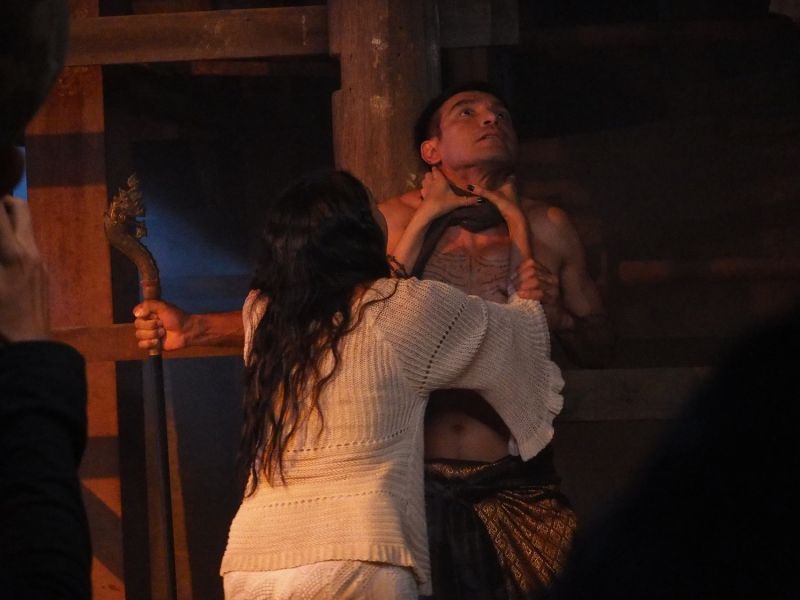 ฉากนี้ทีมงานได้ยกกองไปถ่ายทำกันที่โรงสีเก่า ย่านมีนบุรี ในบรรยาศวังเวง ให้ความรู้สึกการฟื้นคืนชีพของ ผีบุญเพ็ง และพลังความแข็งแกร่งของ ผีไพลิน ระหว่างที่รอ เมฆ เดินทางมาถึง ทีมงานจึงแต่งหน้าสเปเชียลเอฟเฟกซ์ให้กับ เบนซ์ แปลงโฉมเป็น ผีไพลิน ชนิดที่หลอนกันไปทั้งกอง และเมื่อทุกอย่างพร้อม ผู้กำกับฯ จึงได้เดินหน้าถ่ายทันที ถึงแม้ว่า เมฆ จะไม่ต้องแต่งหน้าเอฟเฟกซ์เท่า เบนซ์ แต่ด้วยบท ผีบุญเพ็ง เดินเข้าฉากก็สามารถส่งพลังอาฆาตมายัง เบนซ์ และ วิว ที่ต้องถ่ายทอดความแค้นกลับไปด้วยการบีบคอ ต่อสู้กับ ผีบุญเพ็ง ได้อย่างเข้มข้น ซึ่ง เมฆ ได้เล่าถึงการกลับมาว่า