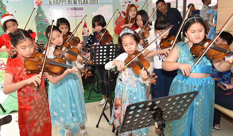 เพื่อสนับสนุนให้เด็กๆ ได้แสดงออกและมีความสุขกับการเรียนดนตรีเพิ่มขึ้นโดย วิศน์กานต์ ขุนสุวรรณ ผู้บริหาร และ ณัฐตชา จันทกลัดผู้จัดการโรงเรียนดนตรียามาฮ่าสุพรรณบุรี เอาใจน้องๆ คุณพ่อคุณแม่ครอบครัวยามาฮ่า ส่งมอบความสุขส่งท้ายปีกับกิจกรรม Merry Christmas & Happy New Year 2019 ที่มาในธีม “การ์ตูนในเทพนิยาย” ได้รับความสนใจจากเด็กๆ ที่ให้ความร่วมมือในการแต่งตัวตามความชอบและรักในตัวการ์ตูนจากภาพยนตร์ดังหลายๆ เรื่องที่ตัวเองหลงใหลและประทับใจ อยากเป็นตัวการ์ตูนนั้นๆ เพราะภาพยนตร์บางเรื่องมีการถ่ายทอดเสียงเพลงเป็นส่วนประกอบ หรือบางเรื่องมีการสอดแทรกข้อคิดในการทำความดีต่างๆ อาทิ สไปร์เดอร์แมน ยอดนักสืบจิ๋วโคนัน สโนไวน์ สุดสาคร ฯลฯ ซึ่งกิจกรรมนี้สอดคล้องกับการเรียนการสอนดนตรีหลักสูตร “ยามาฮ่า” และเป็นประโยชน์แก่เด็กๆ ได้รู้จักวิธีการคิด กล้าแสดงออกในการเล่นดนตรี และมีเดินแฟชั่นโชว์สร้างสีสันความสนุกผสมความน่ารักของน้องๆ