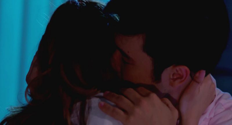 เป็นฉากที่ คนางศ์ (เชียร์) นอนร้องไห้ ฝันถึง เตชิต (แอนดริว) จนสะดุ้งตื่น เตชินท์(แอนดริว) ตกใจ รีบลุกเข้ามาดู คนางศ์ยังคงร้องไห้หนักมาก อารมณ์ของคนางศ์ยังอยู่ระหว่างกึ่งจริงกับความฝัน เมื่อเห็นเตชินท์ คนางศ์โผเข้ากอดแน่น เตชินท์เลยกอดคนางศ์ตอบด้วยความรัก ทั้งคู่มองตากัน เตชินท์ค่อยๆ ดึงคนางศ์เข้ามาใกล้ และบรรจงจูบหน้าผาก