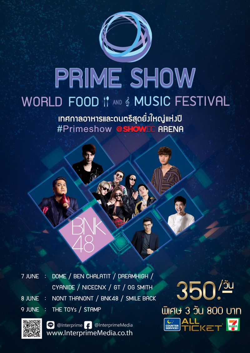 อินเตอร์ไพร์ม มีเดีย จัดใหญ่อีกแล้ว จับมือ กทม. จัดงานยักษ์แห่งปี Prime Show World Food&Music Festival เทศกาลอาหาร&ดนตรี เทศการอาหารและดนตรีที่ยิ่งใหญ่ที่สุดใจกลางกรุงเทพฯ ครบเครื่องทั้ง อาหาร ดนตรีคอนเสิร์ตสุดมัน และสนุกกับเครื่องเล่น 3 คืน 3 วัน