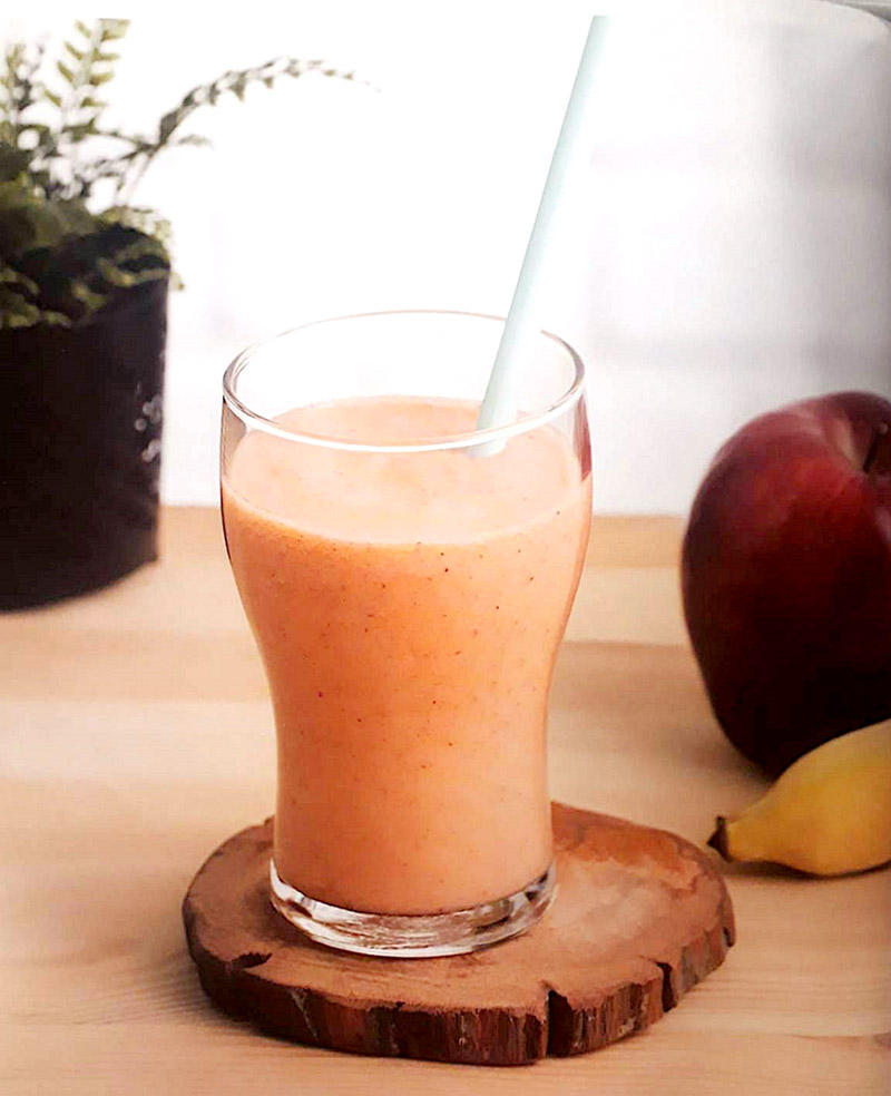 ส่วนผสม แอปเปิ้ลสีแดง ½ ลูก,มะเขือเทศลูกขนาดกลาง ½ ลูก,พริกหวานสีแดง 1/8 ลูก,กล้วยน้ำว้า (½ ลูกใหญ่)1ลูกเล็ก และน้ำเปล่า100 มิลลิลิตร