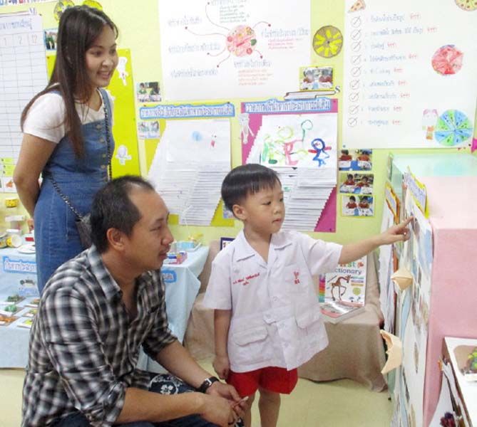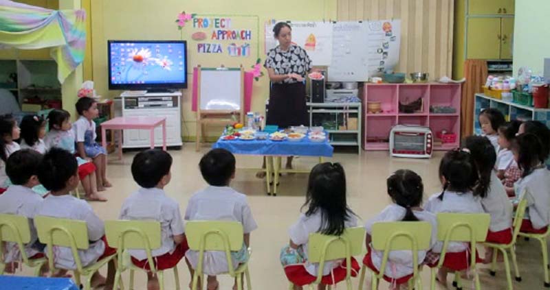 สัปดาห์สุดท้ายเมื่อความรู้ต่างๆ ได้ตกผลึกก็ถึงเวลาที่เหล่าเชฟตัวจิ๋วจะร่วมกันวางแผนงานและจัดแสดงผลงานของ Project Approach เรื่องพิซซ่า และช่วยกันออกแบบจำลองร้านพิซซ่าในแบบของเด็กๆเองอย่างสร้างสรรค์ เด็กๆ ต่างช่วยกันเปลี่ยนห้องเรียนให้เป็น “ร้านพิซซ่าอร่อย” มีเตาอบและอุปกรณ์ในการทำพิซซ่าจัดวางตามมุมต่างๆ ได้อย่างน่าสนใจ ภายในห้องหอมอบอวลไปด้วยกลิ่นพิซซ่า เด็กๆ เดินจูงมือคุณพ่อคุณแม่มาเยี่ยมชมผลงานนิทรรศการของตนเองอย่างสนุกสนานและเต็มไปด้วยรอยยิ้ม พิเศษสุดคงจะหนีไม่พ้นมุมร้านพิซซ่าแสนอร่อย ที่เด็กๆ ต่างเตรียมไว้ให้ผู้ปกครองและผู้ที่มาเยี่ยมชมได้ลองชิมอีกด้วย