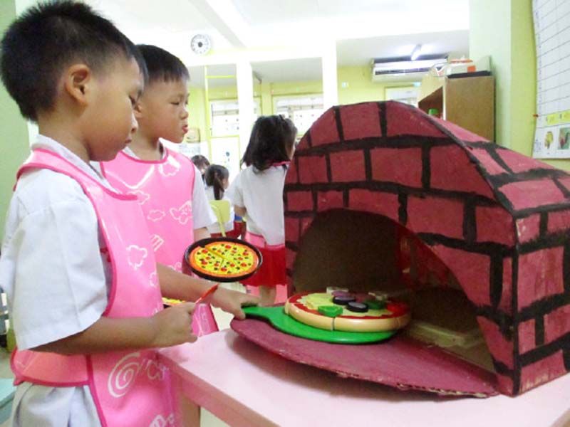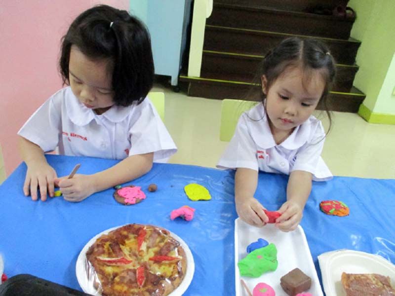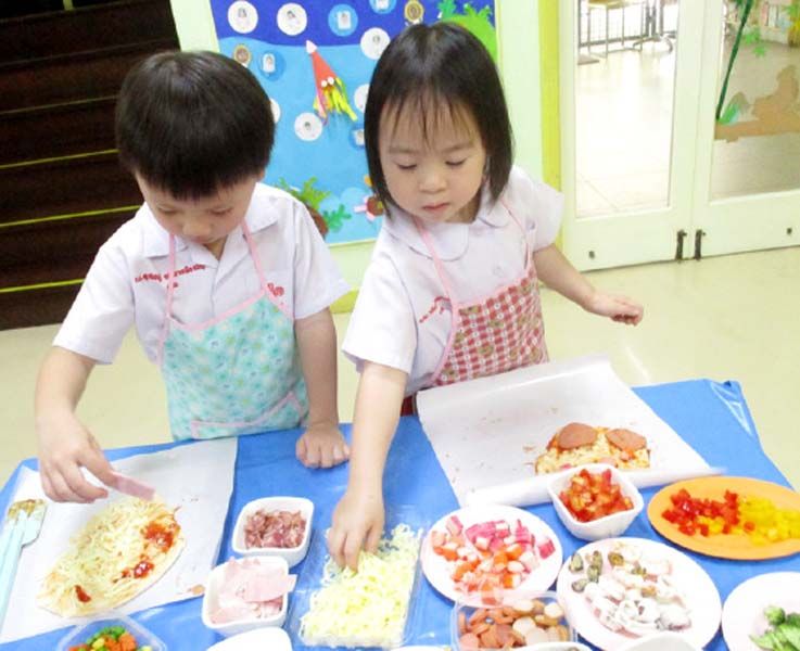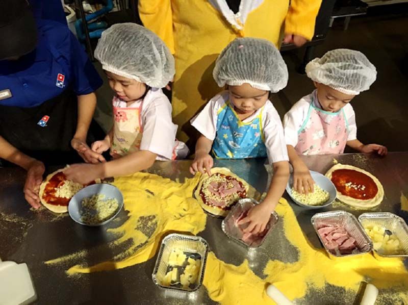 สัปดาห์ต่อมา เด็กๆ ได้ไปทัศนศึกษาที่ร้าน Domino’s Pizza เรียนรู้ขั้นตอนการทำพิซซ่าได้รู้จักกับเครื่องมือ-อุปกรณ์ที่ใช้ในการทำพิซซ่าและอุปกรณ์ต่างๆ ภายในร้าน ยิ่งไปกว่านั้นเด็กๆได้ลองลงมือทำพิซซ่าของจริงด้วยตนเอง ตื่นเต้นและดีใจมากที่ได้เป็นเชฟทำพิซซ่าเองครั้งแรกเมื่อกลับมาถึงที่โรงเรียน เด็กๆ นำประสบการณ์มาเล่าสู่กันฟังแลกเปลี่ยนอย่างไม่รู้เบื่อ เมื่อเด็กๆได้เห็นวิธีการอบพิซซ่าซึ่งเป็นวิธีการทำให้อาหารสุกคุณครูยังชักชวนและถามความเห็นของเด็กๆ ว่าการทำอาหารให้สุกนั้นมีกี่วิธี และอะไรบ้างทำให้เด็กๆ ได้เรียนรู้การทำให้อาหารสุกโดยวิธีอื่นๆไม่ว่าจะเป็นการอบ การต้ม การนึ่ง การทอด การปิ้ง-ย่างต่อยอดไปจากการเรียนรู้เรื่องพิซซ่าอีกด้วย