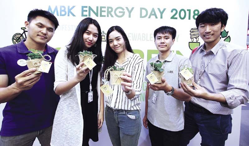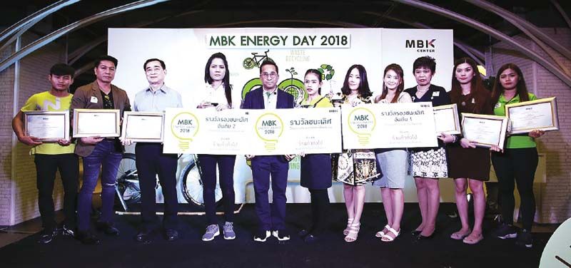 ล่าสุดตอกย้ำการอนุรักษ์ใช้พลังงานอย่างมีส่วนร่วมด้วยการจัดกิจกรรม “MBK Energy Day 2018” ณ ศูนย์การค้าเอ็ม บี เค เซ็นเตอร์ ภายใต้แนวคิด GO GREEN ประกอบด้วย 3 หัวใจหลัก ได้แก่ Green Energy Green Office และ Green Challenge เพื่อสร้างพฤติกรรมและจิตสำนึกที่ดีเกี่ยวกับการร่วมมือร่วมใจประหยัดพลังงานอย่างจริงจังทั้งภายในองค์กรและผู้ประกอบการร้านค้า ภายในงานมีการออกบูธให้ความรู้และสร้างจิตสำนึกเกี่ยวกับการลดใช้พลังงาน แยกขยะ และงดใช้ถุงพลาสติก โดยหน่วยงานภาครัฐและเอกชน อาทิ การไฟฟ้านครหลวง การประปานครหลวง ผู้ผลิตสินค้าเป็นมิตรกับสิ่งแวดล้อม อาทิ กรีนสไตล์ และ อินโดราม่าพร้อมบรรยายพิเศษเรื่อง Green Energy & Green Office โดย อ.ประชุม คำพุฒ หัวหน้าหน่วยวิจัยวัสดุที่เป็นมิตรต่อสิ่งแวดล้อม มหาวิทยาลัยเทคโนโลยีราชมงคลธัญบุรี และพิธีมอบรางวัลให้กับร้านค้าภายในศูนย์ฯที่มีการใช้พลังงานลดลงมากที่สุด ภายใต้โครงการ MBK Energy Award 2018 และ รางวัลให้กับพนักงานผู้ชนะในกิจกรรม Go Green Challenge ซึ่งเปิดโอกาสให้พนักงานของทุกบริษัทในเครือเอ็ม บี เค ได้มีส่วนร่วมสร้างสรรค์วิธีการแยกลด หรือ งด เพื่อสิ่งแวดล้อม