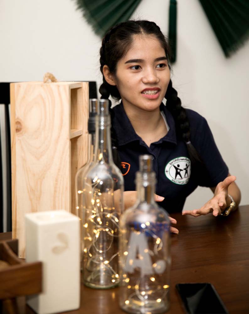เอมอร นิคมคีรี เยาวชนไทยชาวเขาที่ปัจจุบันศึกษาด้านจิตวิทยาองค์กร กล่าวว่า “ Botlight เป็นผลงานชิ้นแรกของหนู หนูชอบงานศิลปะและขัดพื้นผิวไม้ หนูได้เรียนรู้วิธีเลือกไม้ให้เข้ากับลักษณะของขวดไวน์ รู้สึกดีใจที่สามารถก้าวข้ามความกลัวการใช้เครื่องมือไฟฟ้าได้ และอยากลองต่อยอดคิดชิ้นงานอื่นๆ เพิ่มเติม เพื่อช่วยมูลนิธิฯ ให้มีรายได้เพิ่มค่ะ”