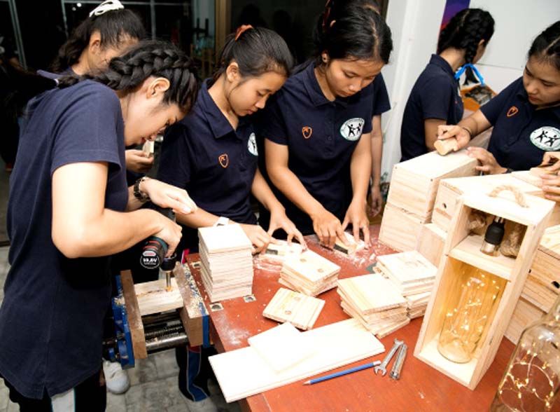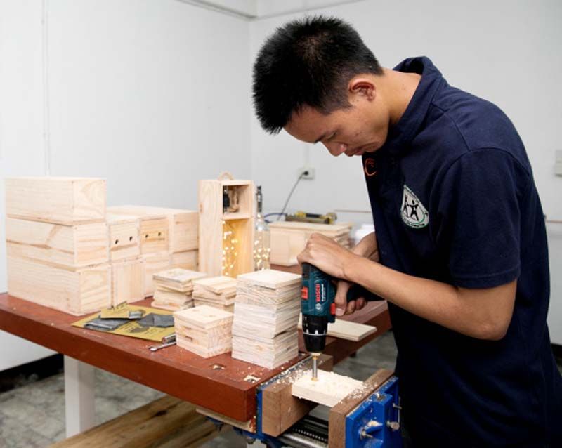 อ.อุดิษฐ์ จันทิมา อาจารย์พิเศษ (Workshop Instructor – part time) สาขาวิชาการออกแบบ คณะวิจิตรศิลป์มหาวิทยาลัยเชียงใหม่ เสริมว่า “ในการใช้เครื่องมือไฟฟ้า สิ่งสำคัญที่เด็กๆ ต้องเรียนรู้คือ วิธีใช้งานอย่างถูกวิธีและปลอดภัย ในขั้นตอนนี้ นักศึกษาอาสาสมัครได้เข้ามามีส่วนร่วมแนะนำและสาธิตให้น้องๆ อย่างใกล้ชิด นักศึกษาจิตอาสาเองก็ได้รับประโยชน์ในการทบทวนความรู้และพัฒนาจากการสอนผู้อื่นเช่นกัน”