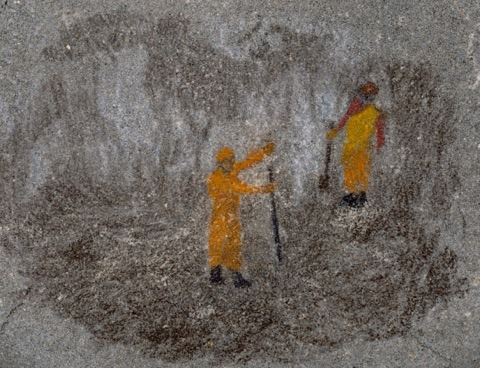 “The act of counting is a meditation, a slow discovery – from the artist to the viewer, from the footpath to the gallery. Her artwork is like a communication between softness of drawing and roughness of concrete. It also resembles how kids often play and draw on the street.”