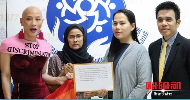 Led by its president, Kittinan Tharamathat, the Rainbow Sky Association of Thailand presented a petition to NHRC commissioner Angkhana Neelapaijit at the agency’s head office in Bangkok.