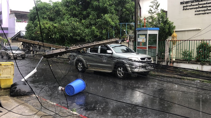 The 3.30pm storm felled a large Bodhi tree near the Hat Yai Police Station, which in turn dragged down three utility poles.