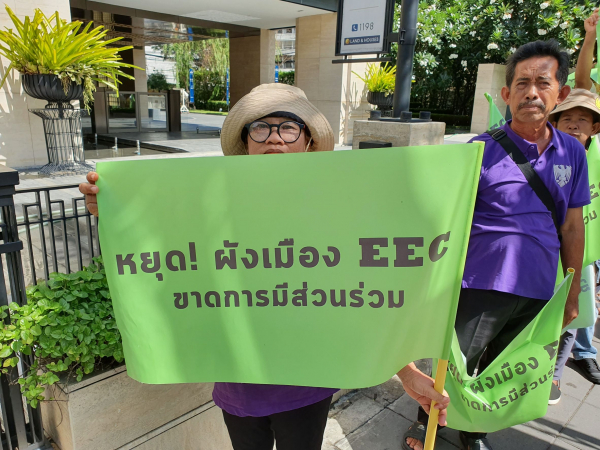 Concerned that the draft might allow factories in agricultural areas, protesters on Tuesday marched from Hua Lamphong Railway Station to EECO headquarters in western Bangkok.