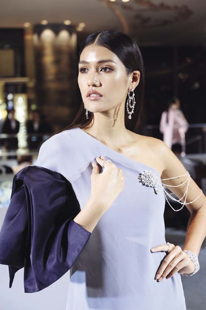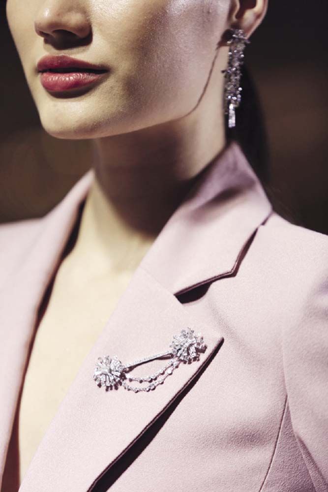 ภายในงาน ได้จัดมินิแฟชั่นโชว์ตั้งแต่คอลเลคชั่น The Emblem ที่เคยสร้างความประทับใจมาแล้ว จิวเวลรี่ชิ้นไฮไลท์ที่ถูกรังสรรค์ขึ้นมาในรูปของเข็มกลัดที่มีสายห้อยระย้าซึ่งสามารถนำมาปรับเป็นสร้อยคอได้ และคอลเลคชั่นพิเศษ The Sparkles ที่ออกแบบโดยดีไซเนอร์รุ่นใหม่เต็มเปี่ยมไปด้วยแพชชั่นอย่าง กิตตินุช อมาตยกุล เล่าถึงแรงบันดาลใจ“คอลเลคชั่น The Sparkles ได้รับแรงบันดาลใจมาจากประกายแห่งความสุข อาจจะเป็นช่วงเวลาที่เรามีการเฉลิมฉลอง เวลาที่เรามีความมั่นใจหรือรู้สึกเป็นตัวของตัวเองที่สุด รวมถึงประกายไฟต่างๆ และกระดาษสีโปรยปรายในงานเลี้ยง ด้วยการที่เราเป็นดีไซเนอร์หน้าใหม่เราจึงสำรวจตลาดก่อนว่าตลาดต้องการอะไร โดยทำเซอร์เวย์กับทางลูกค้าของเจมส์ พาวิลเลี่ยนก่อน แล้วกลับมาวาดรูปดีไซน์ ปรับแก้จนได้แบบที่ต้องการก็เข้าสู่ขั้นตอนของการผลิตซึ่งเป็นขั้นตอนที่ยากเพราะต้องอธิบายอารมณ์และภาพที่อยากให้เป็นของคอลเลคชั่นกับช่าง ถ้าขึ้นเป็นชิ้นงานแล้วจะต้องออกมาเป็นอย่างไร เพราะหากองศาของเพชรเอียงต่างกันนิดเดียวความรู้สึกของชิ้นงานก็สามารถเปลี่ยนไปทันทีค่ะ ในคอลเลคชั่นนี้เน้นใช้เพชรทรง Cushion(คุชชั่น) และทรง Taper (แทปเปอร์) ซึ่งเป็นทรงที่น่าสนใจและนำมาประกอบเข้ากันได้อย่างลงตัว”
