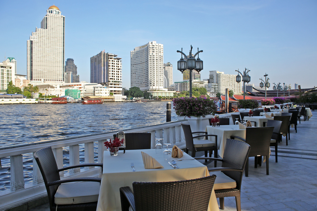 The 100-seat Terrace Rim Naam overlooking the Chao Phra River is open daily for dinner from 5 to 10.30. Make a reservation at (02) 659 9000.