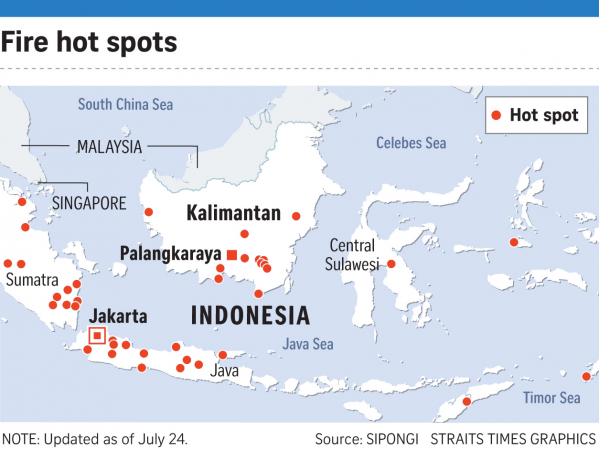 Other Indonesian areas vulnerable to fire are West Kalimantan province and three provinces in Sumatra: Riau, Jambi and South Sumatra. The haze from forest fires that affects Singapore is usually from Sumatra.