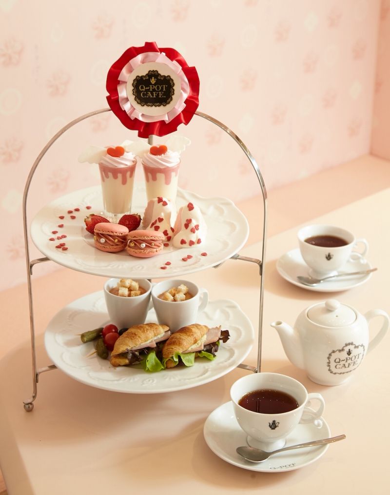 สำหรับเมนูพิเศษต้อนรับเทศกาลวาเลนไทน์ ขอนำเสนอ “Love Heart Melty Parfait” (เลิฟฮาร์ทเมลตี้พาร์เฟ่ต์) พาร์เฟ่ต์สีชมพูในแก้วลายช็อกโกแลตน่ารัก สปอนจ์เค้กเนื้อนิ่ม ฉ่ำด้วยสตรอเบอร์รี่ซอสและสตรอเบอร์รี่ช็อกโกล่าครีมสีชมพู ชูรสด้วยสตรอว์เบอร์รีสด เพิ่มรสนุ่มกับไอศกรีมรสวานิลลาซอลต์ ประดับด้วยเยลลี่และเมอแรงก์รูปหัวใจสีชมพูดวงโตที่ทั้งน่ารักทั้งอร่อย นอกจากนั้น ยังอิ่มเอมจิบชากันต่อด้วย“Arrow Heart Tea Latte”(แอร์โรวฮาร์ททีลาเต้)ชานมหอมหวาน ปรุงจากชาสวีท วีคเอนด์ ท็อปด้วยสตรอว์เบอร์รีช็อกโกล่าวิปครีม เพิ่มความนุ่มให้กับชาถ้วยนี้อย่างเข้ากัน ประดับด้านบนด้วยเยลลี่รูปหัวใจ 3 ดวง เหมือนมีลูกศรคิวปิดปักไว้เป็นเครื่องหมายแห่งความรัก และอีกหนึ่งเมนูที่ถือเป็นไฮไลต์และพลาดไม่ได้“Angel Heart Afternoon Tea Set” (แองเจิ้ลฮาร์ทอาฟเตอร์นูนทีเซ็ต)ชุดน้ำชายอดนิยมของร้าน สำหรับ 2 ท่าน ประกอบด้วยขนมหวาน-คาวแสนอร่อยและน่ารัก ทั้งมู้ส ฟรอมาจบล็อง สัมผัสนุ่มลิ้น, แองเจิ้ลเค้ก สีชมพูพาสเทล, ครัวซองต์สโมกแฮมราดด้วยซอสทาท่าร์และซุปครีมมันฝรั่งผสมมะเขือเทศสีส้มอ่อน ทานแกล้มชาเบลนด์พิเศษของคิว-พ็อต คาเฟ่ที่กลิ่นหอมหวาน ตัดรสหวานของขนมได้อย่างลงตัวนอกจากนี้ Q-pot. Accessory (คิว-พ็อต แอคเซสซอรี) ยังมีเครื่องประดับคอลเลกชั่นพิเศษสำหรับวาเลนไทน์ให้เลือกเป็นของขวัญกันอีกด้วย