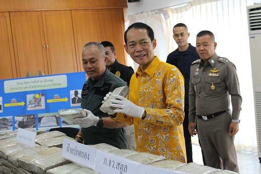 Jaruwat Kliangklao, governor of Satun province, said officials had received a tip-off earlier this week that a large batch of marijuana was being stored in Muang district’s Tambon Tammalang. This was in line with information gathered by a police informant that a large amount of weed had been transported from the North to Satun and was being readied for shipment to Malaysia.