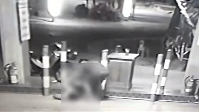 A source at the Pak Thong Chai Police Station said on Sunday that the murder, caught on CCTV, showed the suspect, identified only by first name Thossawat, arriving on a motorcycle and approaching the 26-year-old victim, who was dozing at the checkout counter.