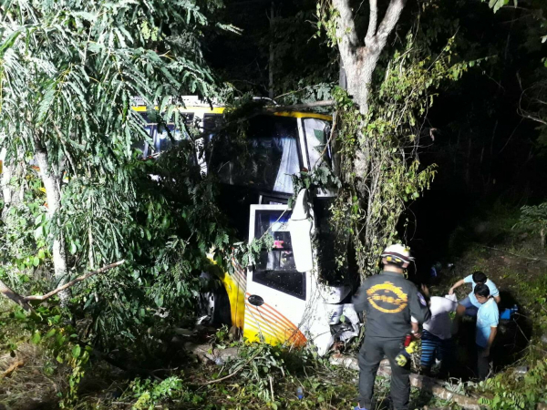 Pol Captain Sirawit Chaiyawan of the Koh Kha Police Station said police suspected the crash was either caused by the bus skidding on the slippery road following rains while going downhill or by the bus driver dozing off behind the wheel.