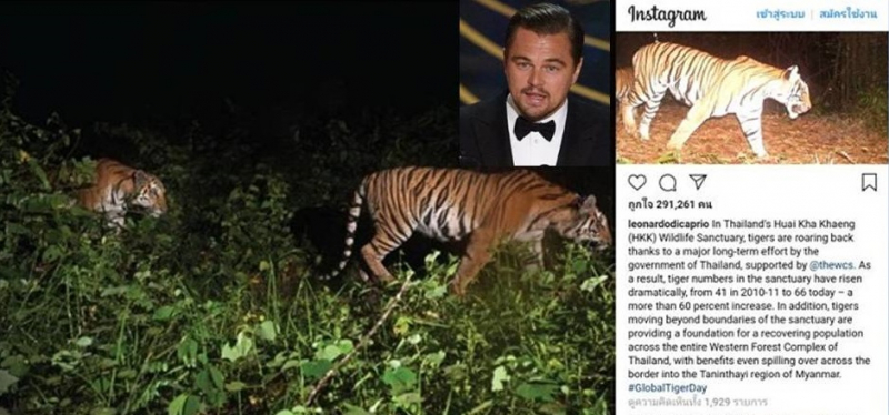 “In Thailand’s Huai Kha Khaeng (HKK) Wildlife Sanctuary, tigers are roaring back thanks to a major long-term effort by the government of Thailand … As a result, tiger numbers in the sanctuary have risen dramatically, from 41 in 2010-11 to 66 today – a more than 60 per cent increase. In addition, tigers moving beyond boundaries of the sanctuary are providing a foundation for a recovering population across the entire Western Forest Complex of Thailand, with benefits even spilling over across the border into the Taninthayi region of Myanmar. #GlobalTigerDay,” DiCaprio wrote to his 33 million followers.