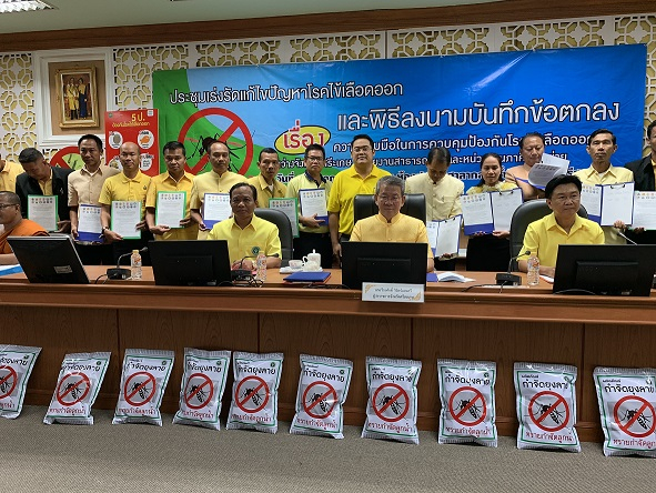 The signatories announced at City Hall that seven people had died from dengue so far in 2019 and that 1,664 people were now suffering from the mosquito-borne tropical disease – that equals a ratio of 112.60 per 100,000 population and makes Si Sa Ket the country’s 12th worst-hit province.