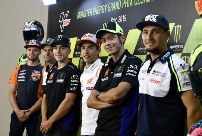 After summer break, the time is finally here to hit the tarmac once again and it’s the classic Automotodrom Brno that kicks off Act II of the season. In the pre-event Press Conference for the Monster Energy Grand Prix České republiky, reigning Champion and points leader Marc Marquez (Repsol Honda Team) was joined by Maverick Viñales (Monster Energy Yamaha MotoGP), his teammate Valentino Rossi, Cal Crutchlow (LCR Honda Castrol), home hero Karel Abraham (Reale Avintia Racing) and 2020 MotoGP™ signing Brad Binder (Red Bull KTM Ajo) to talk shop before the lights go out.