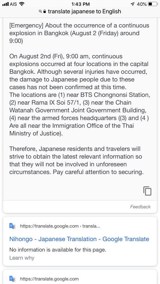 Japanese mission urges nationals in Bangkok to be careful