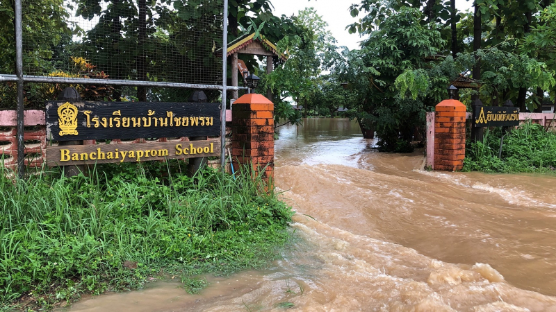 In Phayao, heavy downpours caused floods in farmlands and low-lying homes in Chiang Kham and Dok Kham Tai districts, prompting district chiefs and local administrators to provide aid to the affected residents. Some houses in Tambon Wiang of Chiang Kham were under a one-metre-deep flood caused by Lao River overflow, while a flood barrier section behind Chaiyaphrom School collapsed sending floodwater to cover a one-kilometre-long section of the Ban La-Ban Chaiyaphrom road and make it impassable for all cars.