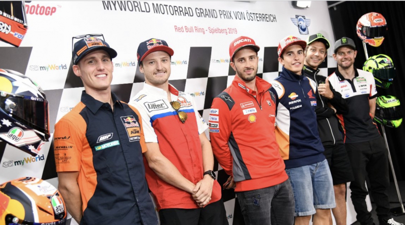 The pre-event Press Conference got some tongues wagging ahead of the myWorld Motorrad Grand Prix von Österreich on Thursday at the Red Bull Ring, with reigning Champion Marc Marquez (Repsol Honda Team) joined by key rival Andrea Dovizioso (Ducati Team), Valentino Rossi (Monster Energy Yamaha MotoGP), Jack Miller (Pramac Racing), Cal Crutchlow (LCR Honda Castrol) and Pol Espargaro (Red Bull KTM Factory Racing) to talk everything from testing to rumours to races and a couple of things in between.
