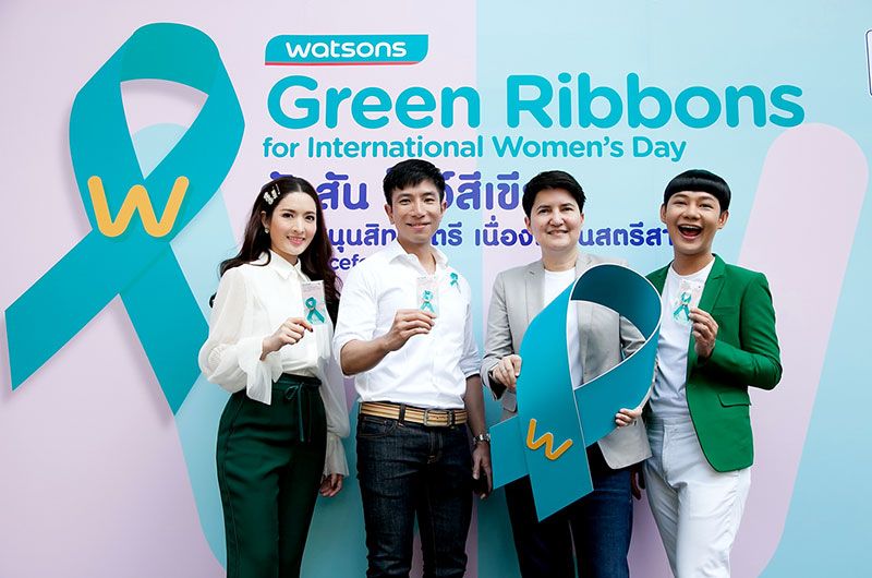 “แอฟ-ทักษร”และ “ดีเจนุ้ย-ธนวัฒน์”จับมือกันร่วมทัพเดินขบวน จำหน่ายโบว์สีเขียว และร่วมแชร์ความรู้สึกหลังการร่วมกิจกรรมเนื่องในวันสตรีสากล ในงาน “Watsons Green Ribbons” วัตสันโบว์สีเขียว ซึ่งจัดขึ้นต่อเนื่องทุกปี เพื่อเชิญชวนคนไทยให้เห็นความสำคัญและช่วยเหลือเด็กและสตรีที่ประสบปัญหาทั้งร่างกายและจิตใจ ให้สามารถกลับมาใช้ชีวิตในสังคมได้อย่างมีความสุขอีกครั้ง พร้อมมอบเงินรายได้โดยไม่หักค่าใช้จ่ายให้กับสมาคมส่งเสริมสถานภาพสตรี ในพระอุปถัมภ์ พระเจ้าวรวงศ์เธอ พระองค์เจ้าโสมสวลี พระวรราชาทินัดดามาตุ (บ้านพักฉุกเฉิน) ณ ร้านวัตสัน สาขา ซี.พี. ทาวเวอร์ สีลม