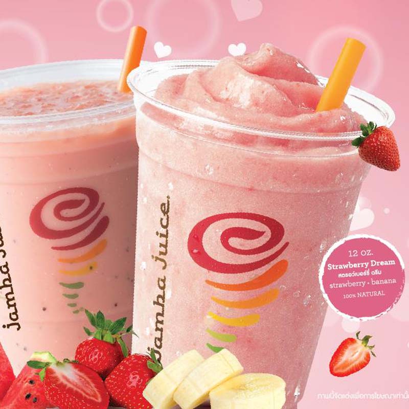 “Blended with Love” ชวนชิมเครื่องดื่มสมูททีสีชมพู Strawberry Dream All Fruit และ Watermelon Dreamขนาด 12 ออนซ์ พร้อมโชว์คูปองจากแอพพลิเคชั่น Line @jambajuiceth ก็ยิ้มหวานรับสมูททีสุดอร่อย 2 แก้ว ในราคาเพียง 200 บาท วันนี้-28 ก.พ.ที่ร้านแจมบาร์ จูซ สาขาสยามพารากอน, ดิ เอ็มควอเทียร์และเมกา บางนา