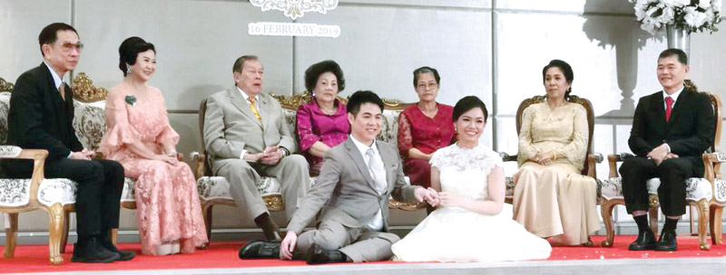 พล.อ.อนุพงษ์ เผ่าจินดา รมว.กระทรวงมหาดไทย ประธานในพิธี พร้อมภริยา กุลยา เผ่าจินดา ร่วมแสดงความยินดีกับคู่บ่าว-สาว มี คุณพ่อ-คุณแม่ฝ่ายชาย ธนันภัฒน์ เลิศศิริอำนวยพร-มนทิรา อภินันท์รัตนกุล, คุณพ่อ-คุณแม่ฝ่ายหญิง สุทธิชัย-เพียงใจ คัมภีริชยา และพี่สาว-พี่เขยฝ่ายชาย ณิชุบล-พล.ท.สรรเสริญ แก้วกำเนิด ร่วมต้อนรับ