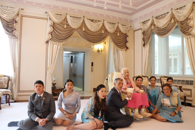 Their Majesties King Maha Vajiralongkorn and Queen Suthida along with members of the Royal Family members visited Her Majesty Queen Sirikit, the Queen Mother at Chitralada Hall, Dusit Palace to celebrate her 87th Birthday Anniversary.