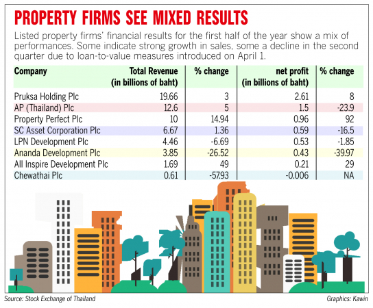 Property Perfect Plc put its revenue at Bt4.3 billion, down 8.5 per cent, but its Q2 net profit was Bt471.46 million, up 208.14 per cent from the same period last year.