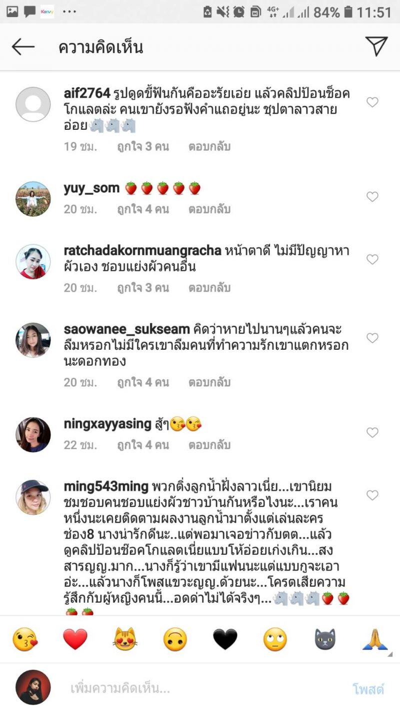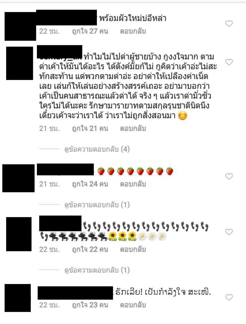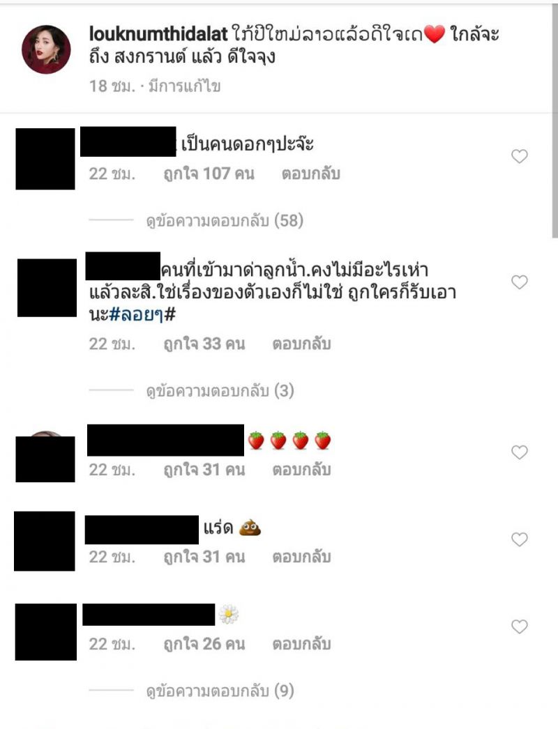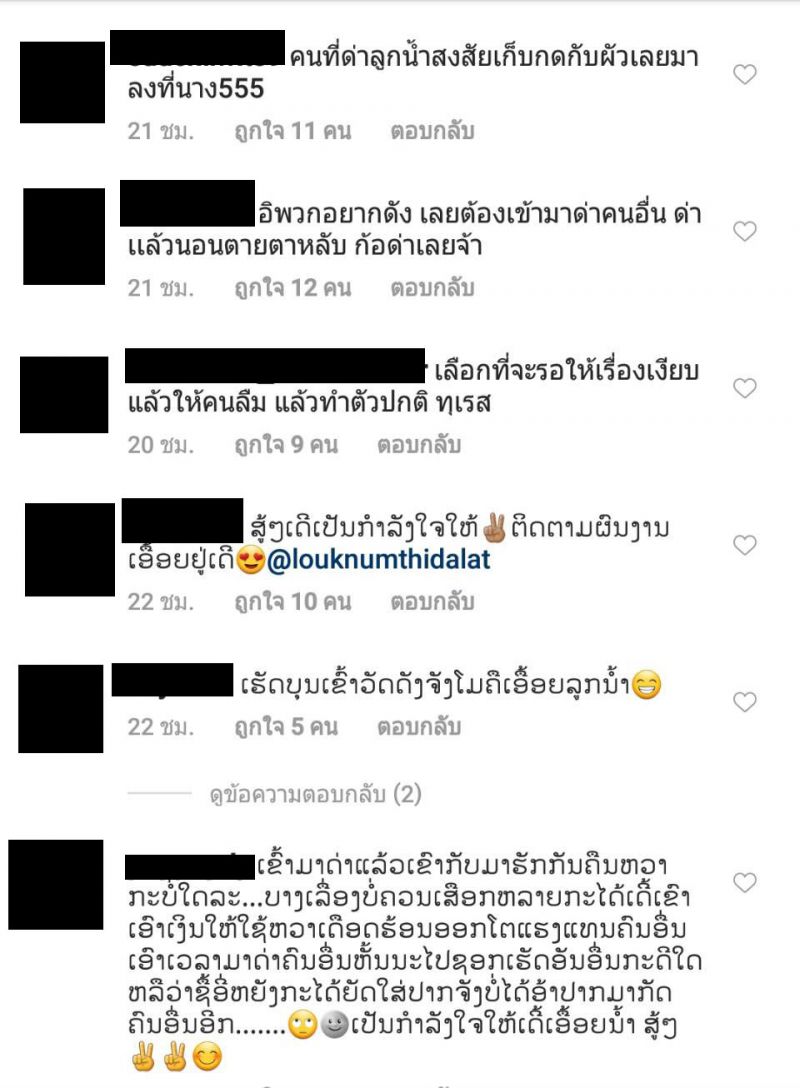 โดยล่าสุดสาวลูกน้ำก็กลับมาเคลื่อนไหวบนอินสตาแกรมอีกครั้ง พร้อมโพสต์ข้อความว่า ใกล้ปีใหม่ลาวแล้วดีใจ และข้อความภาษาไทยว่า ใกล้จะถึง สงกรานต์ แล้ว ดีใจจุง แต่ก็ยังไม่วายโดนคอมเมนต์ของชาวเน็ตถล่มและส่งอีโมติคอนรูป สตอว์เบอร์รี่ และดอกไม้มาอย่างรัวๆ งานนี้ก็มีบรรดาแฟนคลับไทยและลาวเข้ามาคอมเมนต์เตือนสติชาวเน็ตและเป็นกำลังใจให้สาวลูกน้ำ