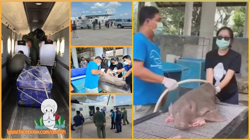The Department of Marine and Coastal Resources (DMCR)’s Facebook page has published a short video clip showing veterinarians washing the carcass on Saturday afternoon before sending it to Trang Airport. There it was put aboard a Third Naval Region’s aircraft for a flight to Bangkok to undergo taxidermy at Pathum Thani’s National Science Museum.