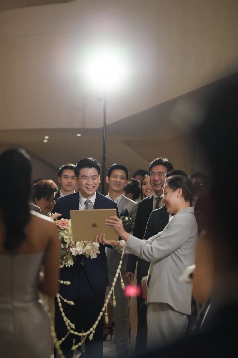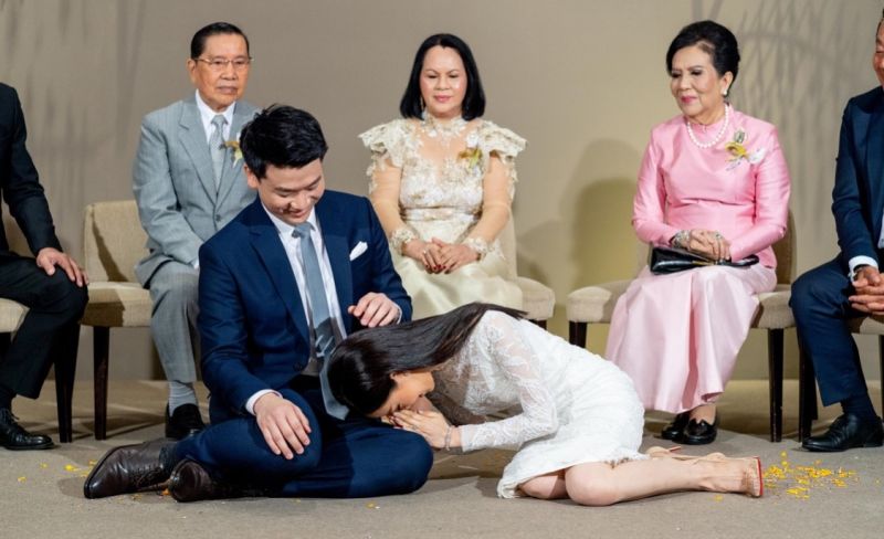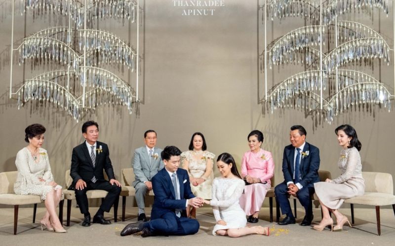 โดยได้จัดพิธีตามขนบธรรมเนียมประเพณีในช่วงเช้า ณ ห้องบอลรูม โรงแรมพาร์ค ไฮแอท กรุงเทพฯ เมื่อวันที่ 24 กุมภาพันธ์ 2562 ที่เต็มไปด้วยบุคคลสำคัญของบ่าวสาว อาทิเช่น ครอบครัว ผู้ใหญ่ที่ครอบครัวทั้งสองเคารพรัก ตลอดจนแขกผู้เกียรติที่ร่วมพิธีในช่วงเช้า ก่อนจะมีงานฉลองมงคลสมรสแบบซิทดาวน์ลันช์แบบเอ็กซ์คลูซีฟ ด้วยการตกแต่งและจัดโต๊ะแบบ Long Table ที่ดูทันสมัยแต่แฝงไปด้วยรายละเอียดปลีกย่อยที่ทำให้งานดูเป็นกันเองและมีความใกล้ชิดอันเป็นความต้องการของบ่าวสาว โดยออกแบบเป็น Long Table สองฝั่ง จำนวน 150 ที่นั่ง เสิร์ฟอาหารเป็นคอร์ส ประดับประดาไปด้วยดอกไม้นานาชนิดอันเป็นความชอบของเจ้าสาว แฝงด้วยการตกแต่งโต๊ะด้วยเทียนหลากหลายขนาดที่ดูลดหลั่นสวยงามได้อย่างพอดิบพอดี สร้างบรรยากาศโรแมนติกและความสดชื่นให้กับผู้มาร่วมยินดี จำลองบรรยากาศเสมือนดินเนอร์ยามค่ำคืนที่ทุกคนร่วมเป็นสักขีพยานในความรักของบ่าวสาวในครั้งนี้