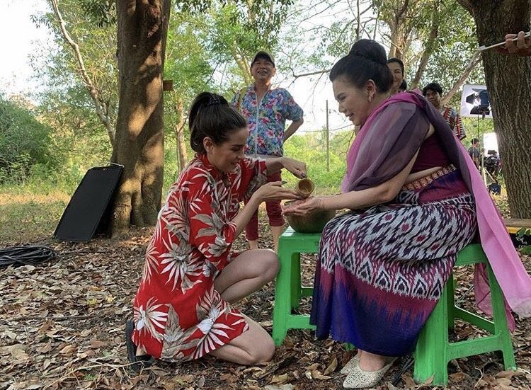 ร่วมสืบสาน ประเพณีสงกรานต์อันดีงามของไทย สำหรับ ทีมนักแสดง “เพรงลับแล” ทาง สถานีโทรทัศน์ ช่อง 8โดย สมาร์ท-กฤษฎา พรเวโรจน์ และ น้ำตาล – ชลิตา ส่วนเสน่ห์ อยู่ในชุดย้อนยุคแบบไทยโบราณ ช่างเข้ากับบรรยากาศกลางป่าเขาสุดๆ ด้าน ณฉัตร – กวิยณัฎฐ์ แฮร์มันน์ , ธงธง ม๊กจ๊ก , พิมจันทร์ พิชยะสูตร และทีมงาน ก็นัดกันมาในธีมเสื้อลายดอกสีสดใส ถือโอกาสช่วงพักกอง ร่วมรดน้ำดำหัวขอพรจาก “แม่อี๊ด – ดวงใจ หทัยกาญจน์” ทำเอาแม่อี๊ดเป็นปลื้ม ชุ่มฉ่ำหัวใจ เอ็นดูในความน่ารัก เลยให้พรกับชาวหมู่คณะชุดใหญ่ เรียกว่า เป็นภาพน่ารัก บรรยากาศสุดประทับใจจริงๆ