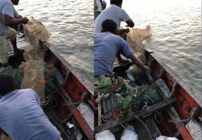 Officials remove illegal fishing traps in shallow waters of Laem Talumpuk Bay